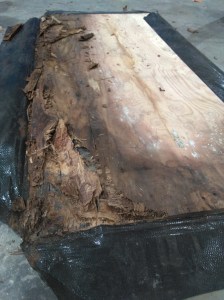 Rot is typically caused by a water leak somewhere. The repairman couldn’t identify the source of the leak, but the evidence speaks for itself.