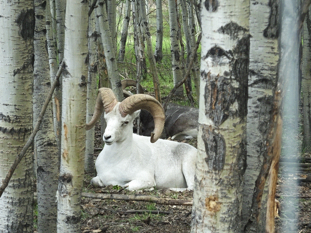(Pat) Yukon Wildlife Preserve, also near Whitehorse, Yukon (map pt #33) – we rode our bikes through the preserve and saw a variety of animals in a natural setting.