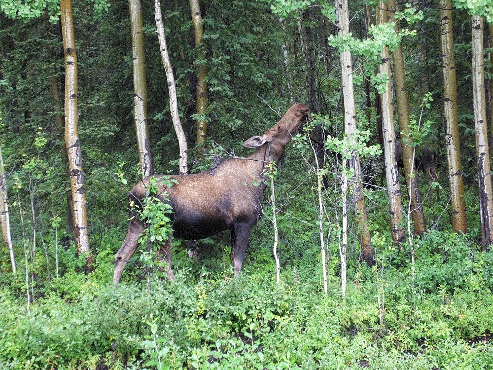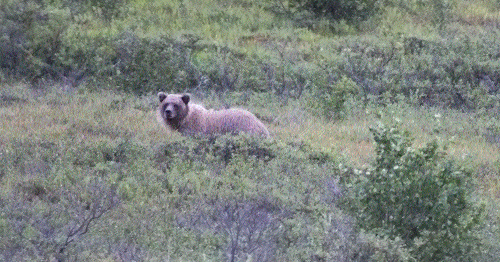 We saw four of the five major mammals that call Denali home: a herd of about 15 caribou (also known as reindeer), several distant dall sheep, a much closer grizzly bear, and a cow moose. Only wolves remained unseen.