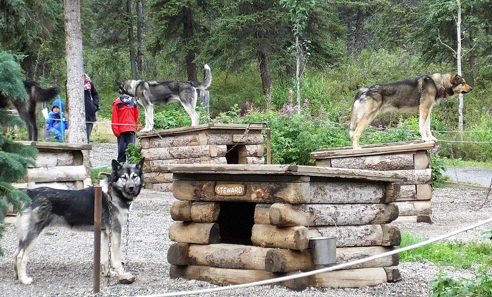 As mentioned in an earlier blog post, Denali National Park has a nice dog sled presentation. It is amazing how excited the dogs are as they wait to be hitched and how much enthusiasm they show when pulling. Some photos from the presentation: