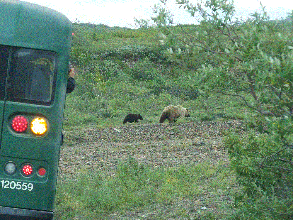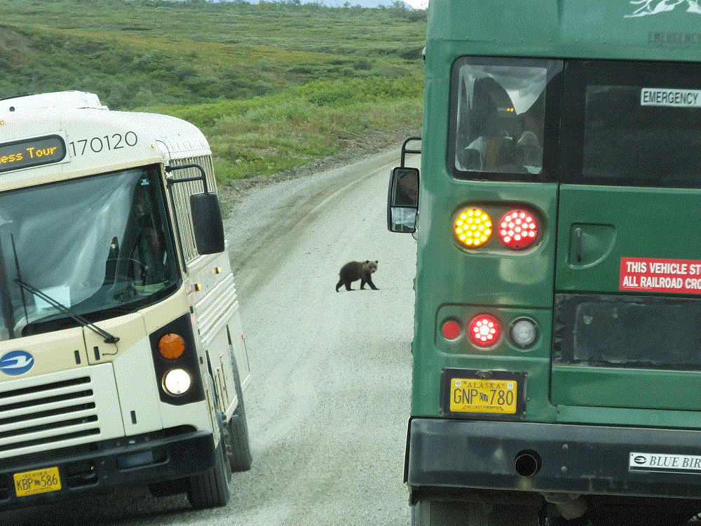 Like our previous trip we saw lots of animals, including a mother grizzly and cub that crossed the road right in front of several buses.