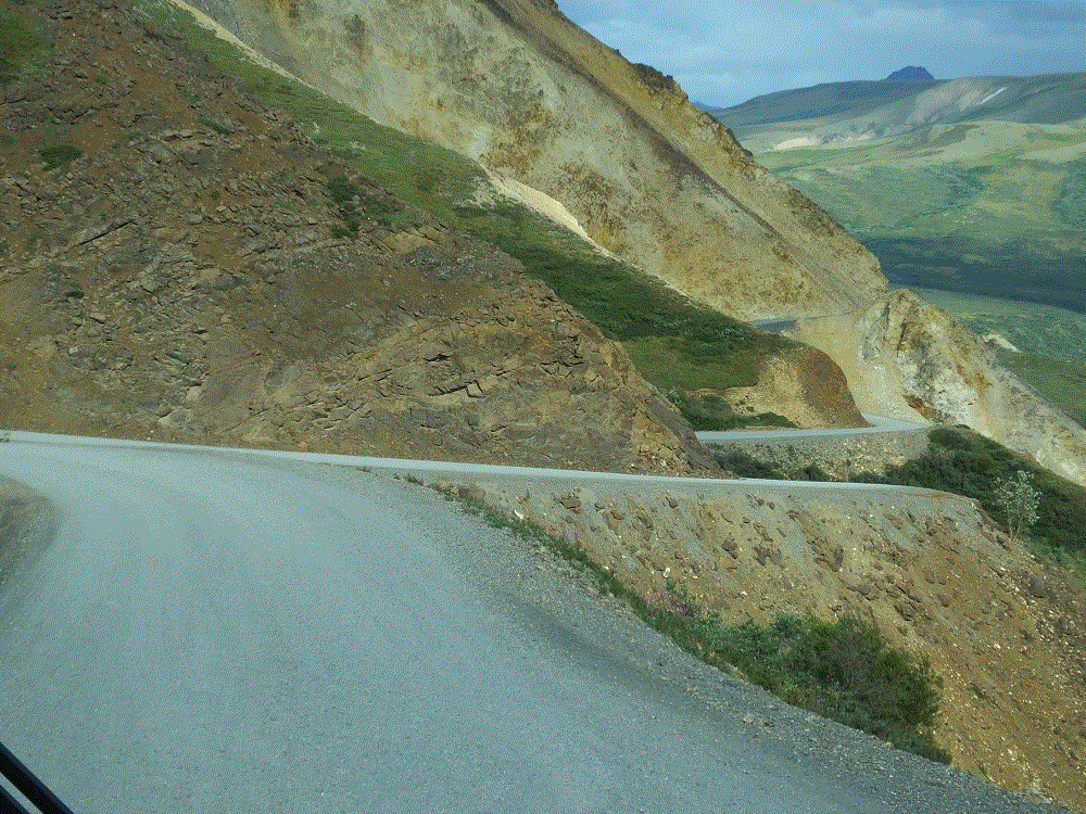 At Eielson we hiked a short (.8 mile one way) but very steep (1000 ft elevation gain) trail to an alpine ridge overlooking the visitor center. The day was partly cloudy and the views were wonderful. Had the day been clear, we would have seen Denali.