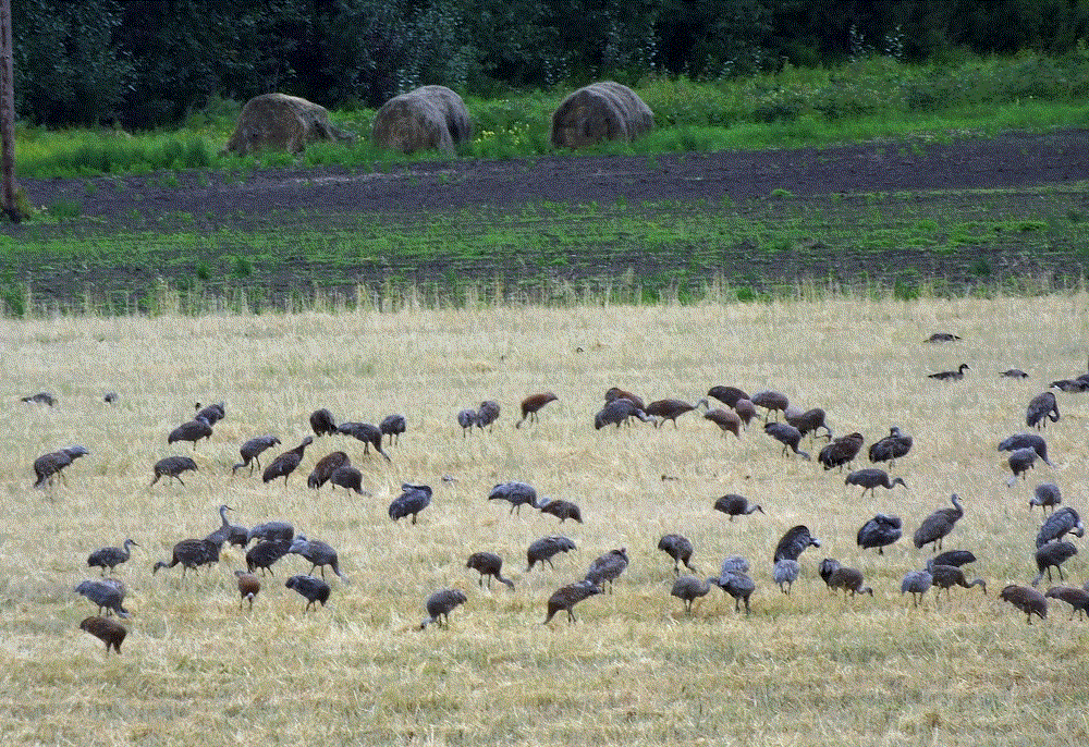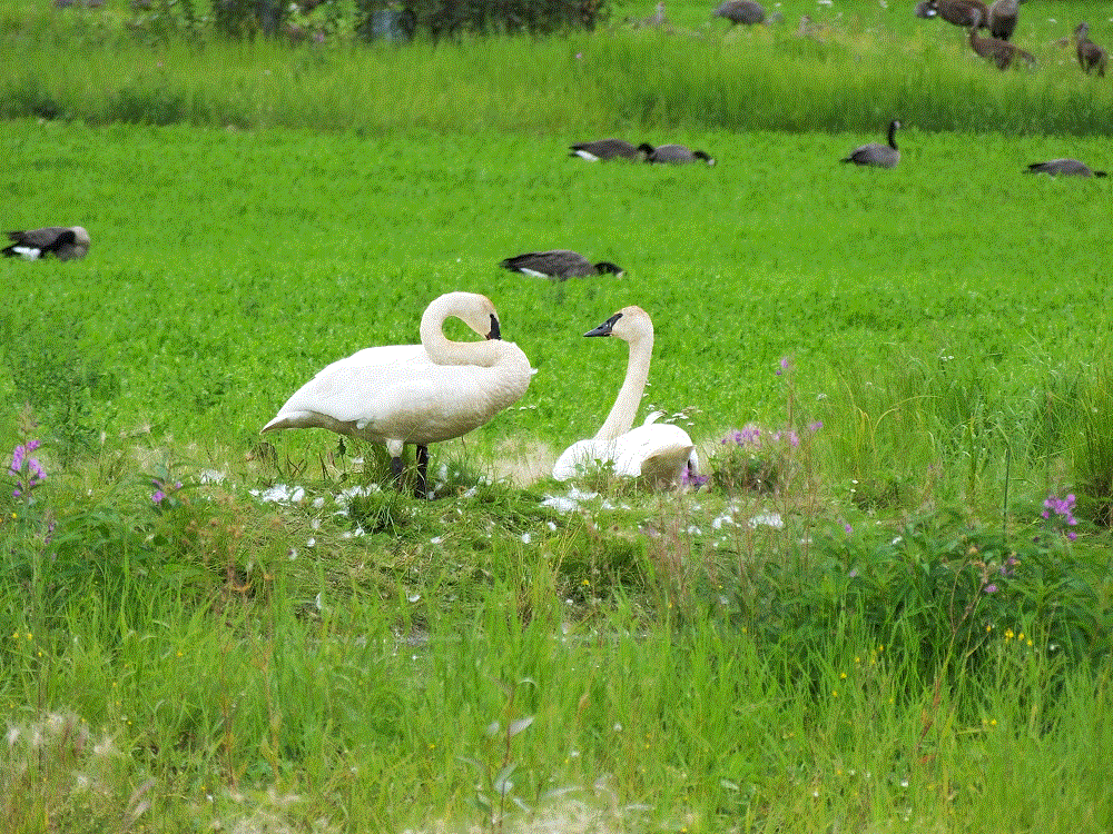 We watched hundreds of sandhill cranes circle the gardens and land on a large field across the road. It is one of the areas in town where migratory birds rest during their long distance flights south. Elsewhere in Fairbanks is Creamers Field Migratory Waterfowl Refuge, located on a large tract of land that used to be a dairy. We saw lots of sandhill cranes, Canadian geese, ducks, trumpeter swans and more.