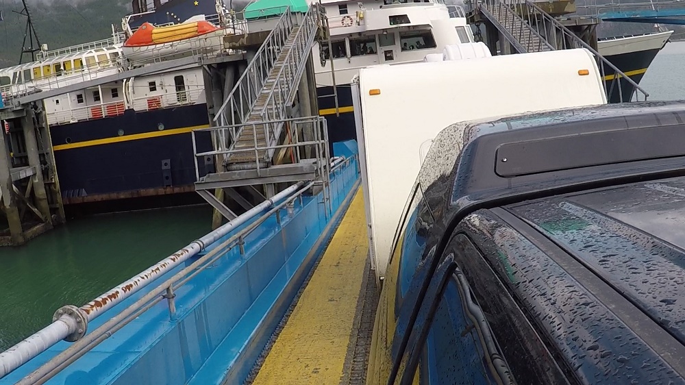 God’s timing is perfect! Had we left the day before, we would have backed onto the ferry in rain. Instead, when we backed on to the ferry the rain had just ended and the sun came out. The boat ride to Skagway was beautiful.