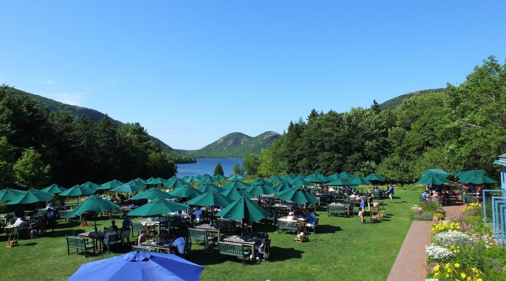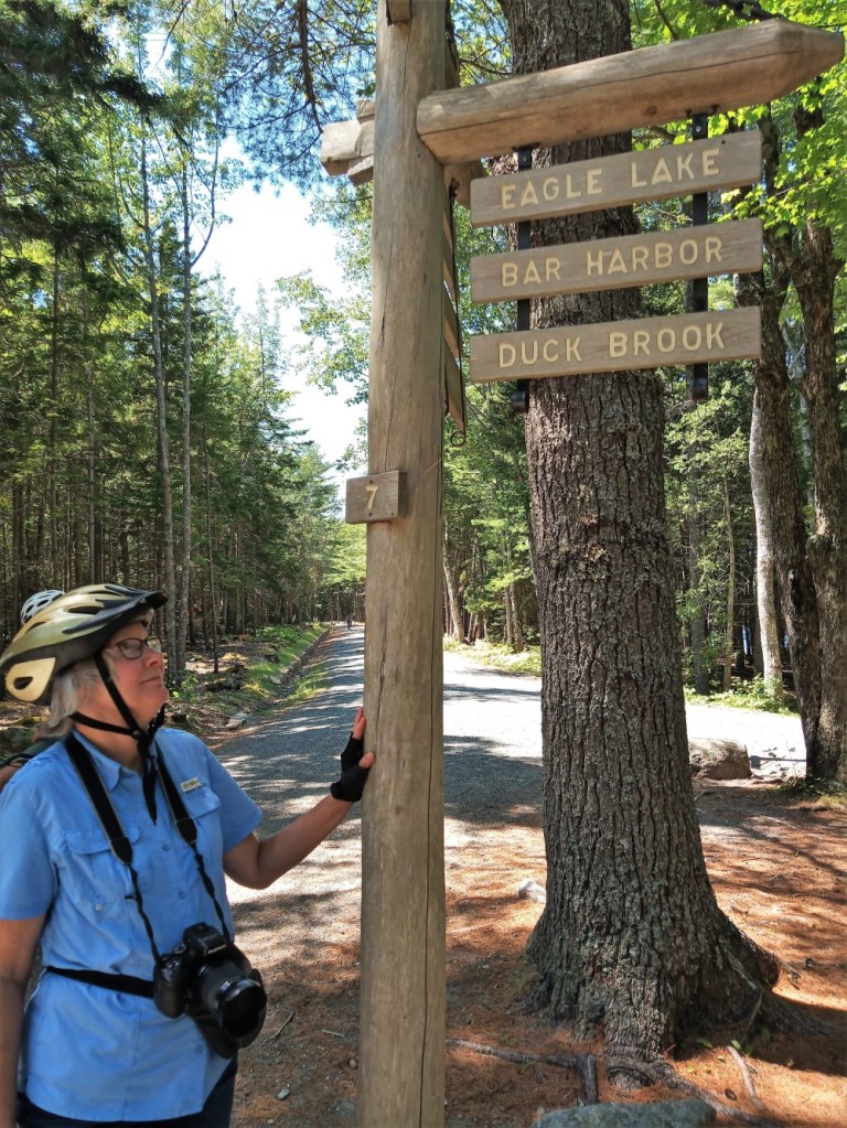We reboarded the shuttle and rode to Jordan Pond House. Many were enjoying dining on the lawn, an appealing grassy area dotted with chairs, tables and green umbrellas. Having already eaten lunch, we opted for a 2-mile trail along the east side of the pond and then another trail back to the loop road and a shuttle bus stop. Little did we know that the shuttle no longer stopped at that location. As we considered whether to go back to Jordan Pond House or to continue along the road to the next shuttle stop, a volunteer park ranger and his wife from Tennessee kindly offered us a ride back to the visitor center. We enjoyed visiting with them and learned we had much in common – RVing and past travels to Alaska and the US west.