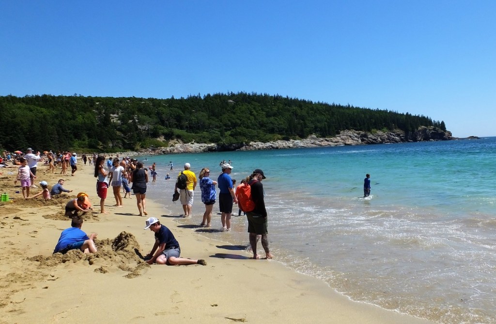 The next morning we visited the park visitor center to get our bearings and to get our National Park book stamped. We decided to take a free shuttle bus around the 27-mile park loop road. The first stop was at Sand Beach, a beautiful beach where we ate a picnic lunch and watched visitors enjoying the sand, waves and summer sun. Honestly, it was hard to get excited about the beach, considering the frigid temperature of the water and fantastic beaches we have in Florida.