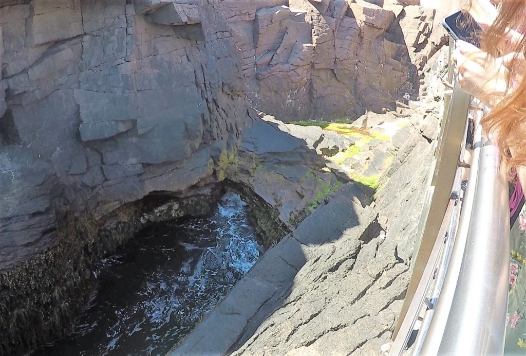 From Sand Beach we walked about a mile to Thunder Hole. Thunder Hole is a natural formation that thunders loudly when sea water races up a narrow inlet to a small cavern. The thunder is loudest just before high tide. We were there a little early and had to settle for fainter, distant thunder.