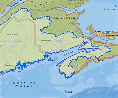 Fundy NP is situated on the Bay of Fundy, between New Brunswick and Nova Scotia provinces, and is home of the highest tides in the world.
