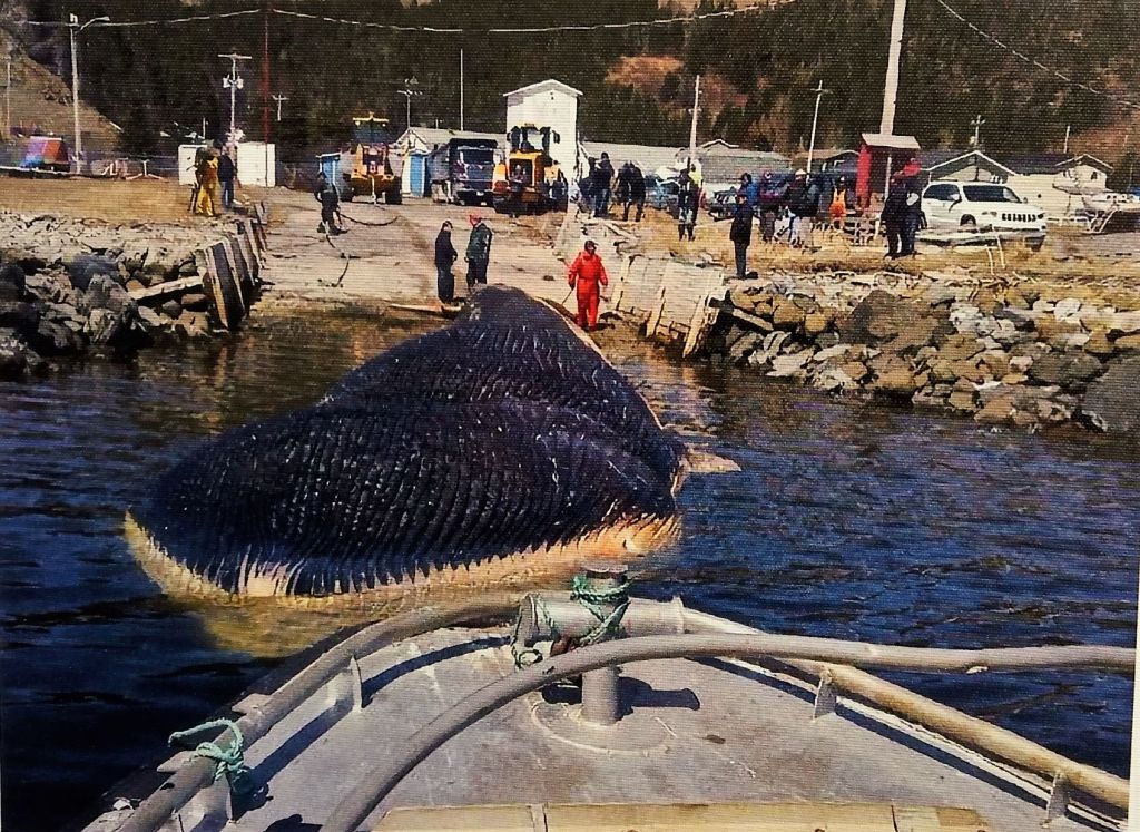 Trout River’s ‘15 minutes of fame’ occurred in April 2014, when a blue whale carcass drifted to shore coming to rest on an icy beach near town. By May, the ice drifted off leaving the grounded whale carcass. After remaining on the beach for several weeks, the massive mammal was towed to another location for ‘dismantling.’ Today, the whale skeleton is on display at the Royal Ontario Museum in Toronto.