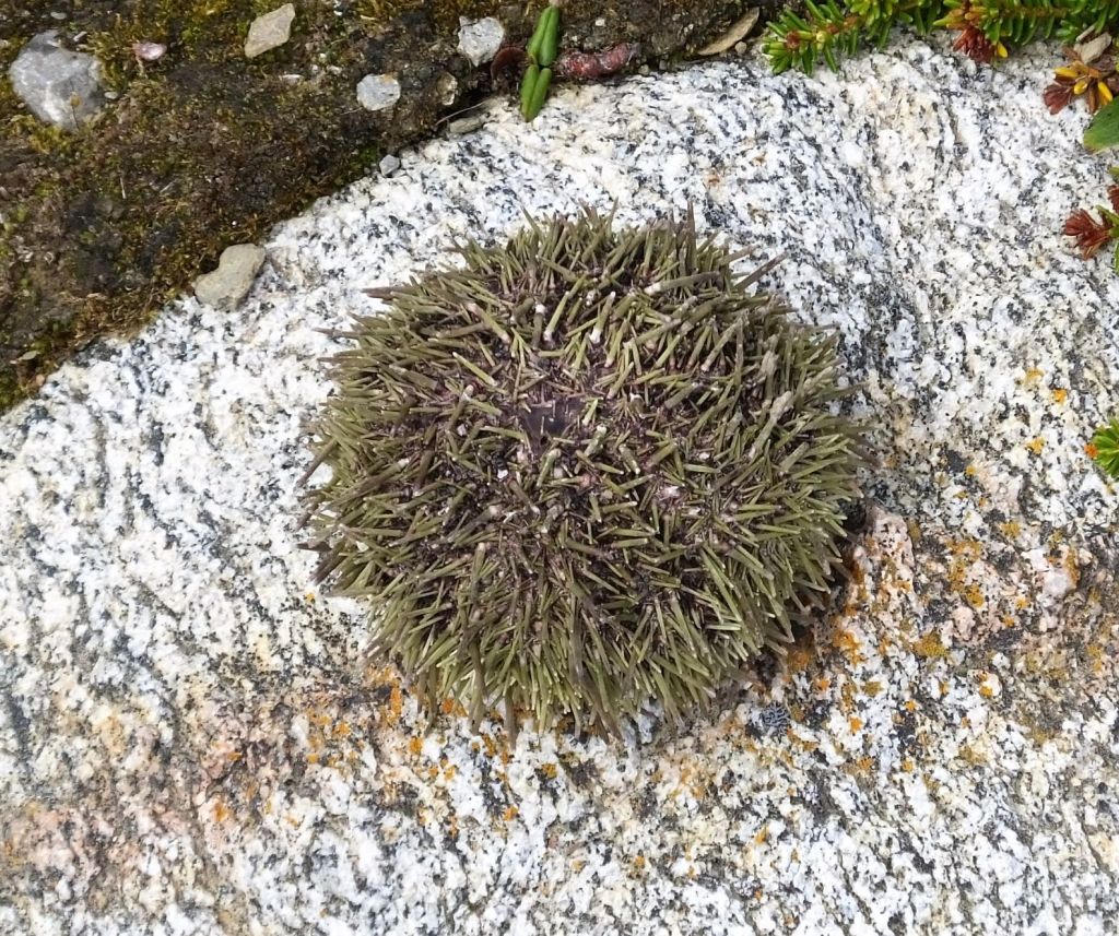 Portions of the trail were littered with what appeared to be egg shells. Closer examination revealed they were actually dried sea urchin shells. Nearby, seagulls were dropping live urchins on the rocks, eating the contents and leaving the shells to dry in the sun.