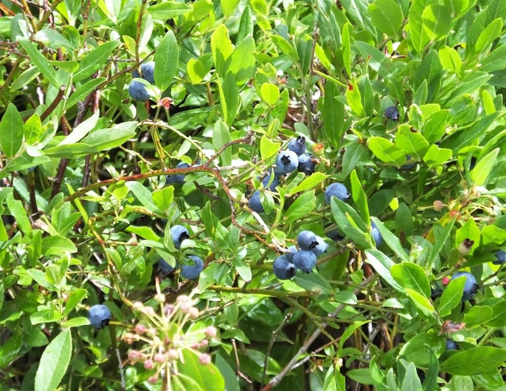 We crossed a boggy area on one trail with plentiful blueberry bushes and stopped for a few minutes to pick ripe berries. For the next couple days, we enjoyed them in pancakes and with yogurt. We were blessed by the find, as most of the blueberry bushes in the area had already passed their prime.