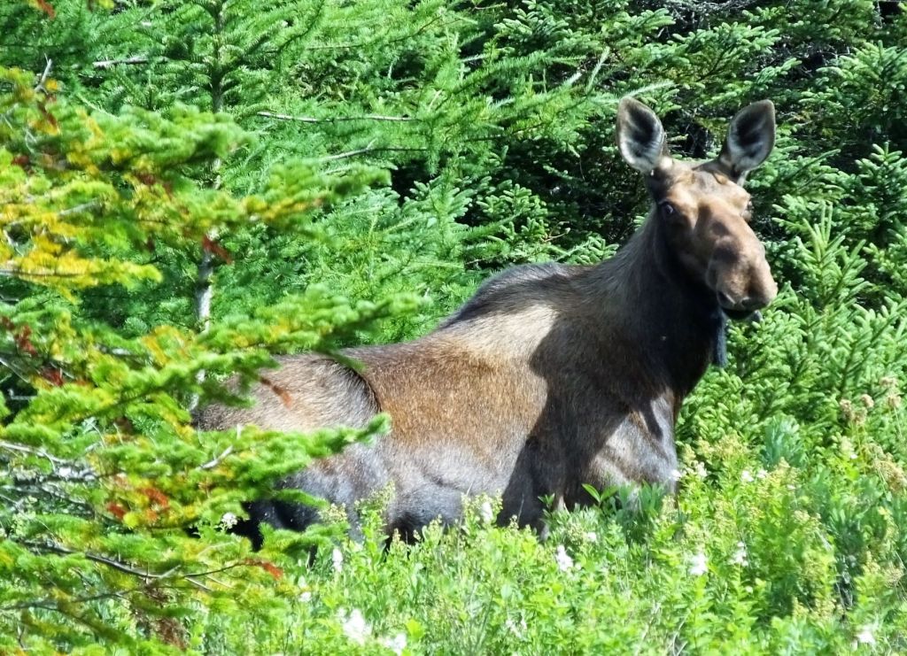 In 1997, we visited the Bonavista Lighthouse with our children, Liz and Phil, and while climbing the lighthouse, we saw whales breaching in the waters nearby. This time we were not so fortunate to see whales, but we did see multitudes of cute puffins, nesting in and flying around rugged rock cliffs near the lighthouse. We also saw two moose along the road a few miles before we reached the lighthouse.