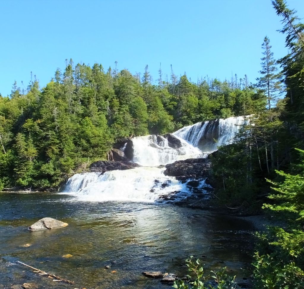 The next morning we endured the longest hike of our trip through meadows and balsam fir forest to Baker’s Brook Falls. We enjoyed the beautiful stairstep falls and had two aggressive birds join us for lunch!