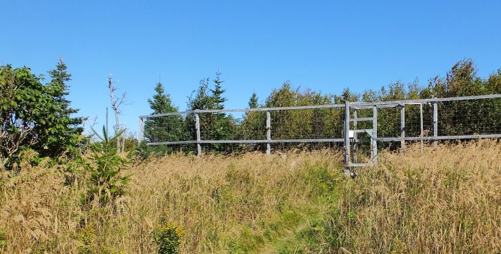 On the hike back from the falls, we visited an interesting moose ‘ex-closure’ to observe the impact of moose grazing on area vegetation. Inside a 100-meter-square fenced area, the trees and undergrowth were dense and lush. Outside, there were scattered trees, grasses and limited undergrowth. Though we didn’t see many moose during our NF travels, their impact in the area was very evident!