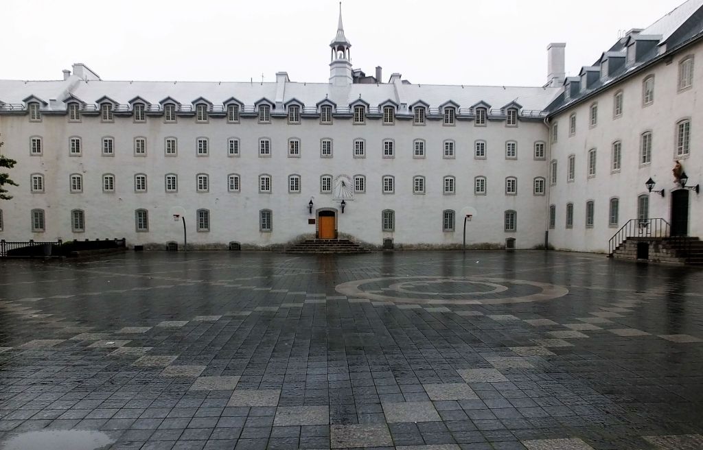We walked down narrow streets, stopping to shop in a quaint district with interesting souvenir shops. Then we visited the magnificent Notre-Dame de Quebec Basilica-Cathedral and Seminaire de Quebec next door. The Seminaire had a large courtyard that reminded us of a scene from the movie Papillon.
