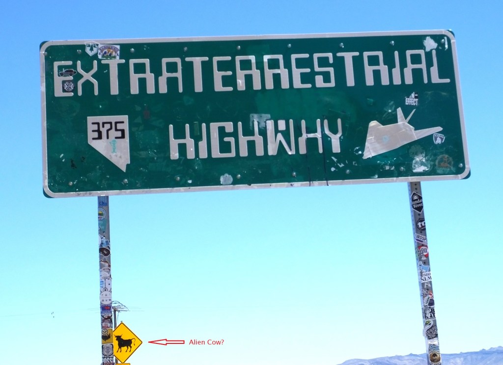 We left Ely and crossed central Nevada. The region has many remote highways and Nevada highway 375 between Warm Springs and Ash Springs is known as the ‘extraterrestrial highway.’ The 94-mile highway skirts the highly classified US Air Force facility known as Area 51, where numerous events involving alien beings have allegedly taken place.