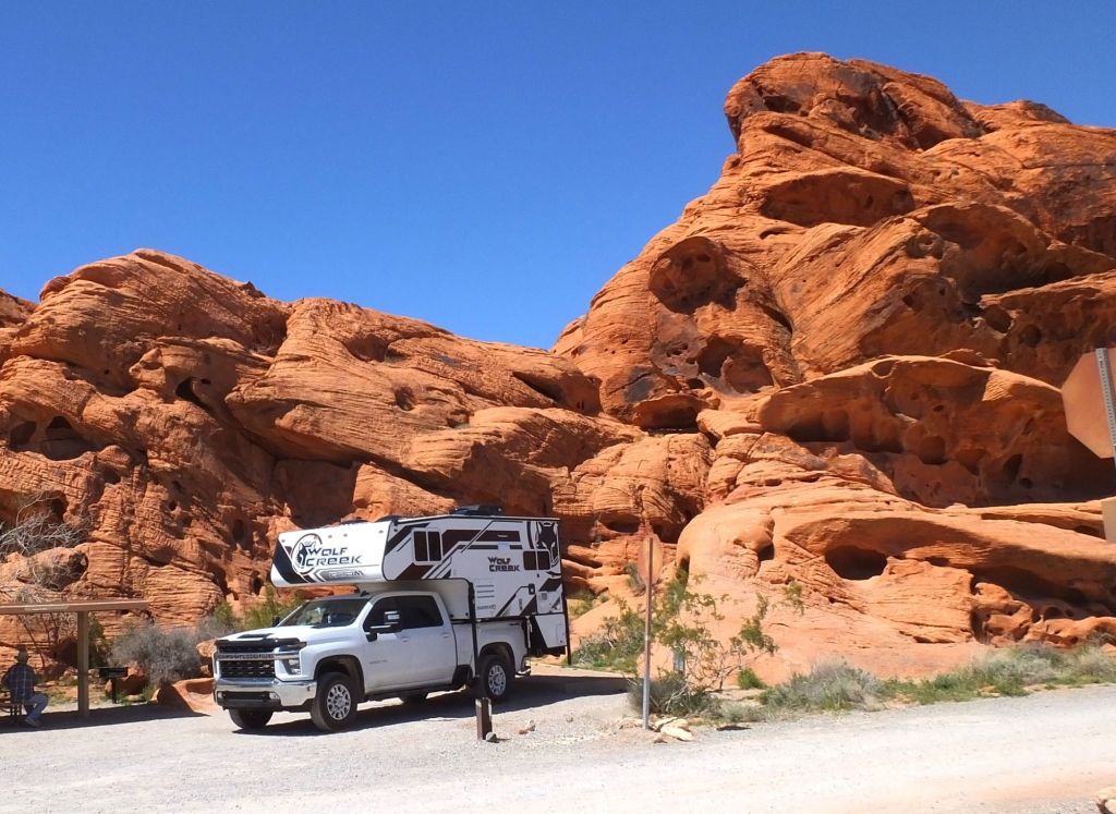 VOFSP is a popular state park a few miles east of Las Vegas. The campground sites are first come, first serve and a disheartening ‘campground full’ sign greeted us when we arrived. We stopped for lunch and a visit to the dump station, and while we waited, we overheard a ranger telling another RV traveler to drive through the campground as the campground full signs were often incorrect.