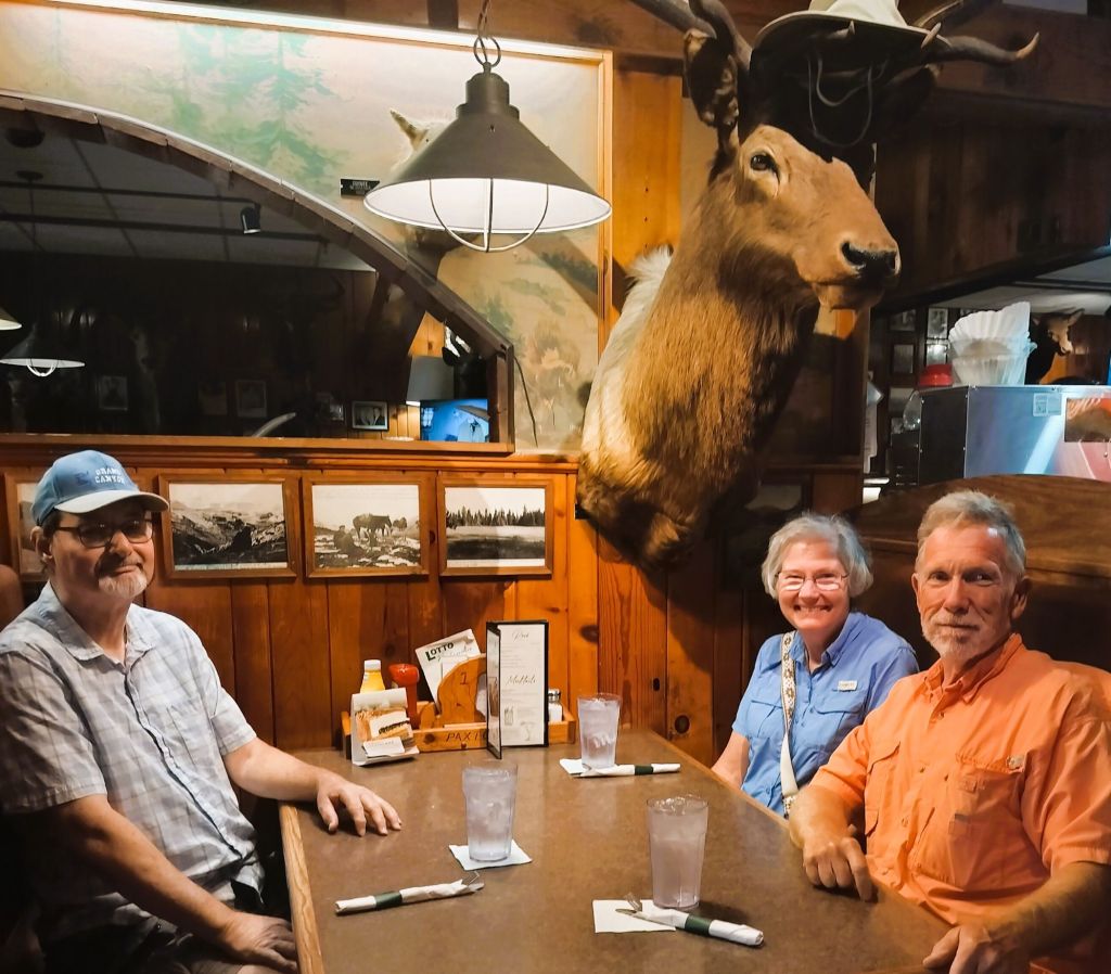 Beneath a large elk, we sampled a local seafood appetizer, otherwise known as Rocky Mountain Oysters. We tried not to think of the source of the crispy breaded and deep-fried meat filets as we dipped them in ketchup and chewed/swallowed them quickly.