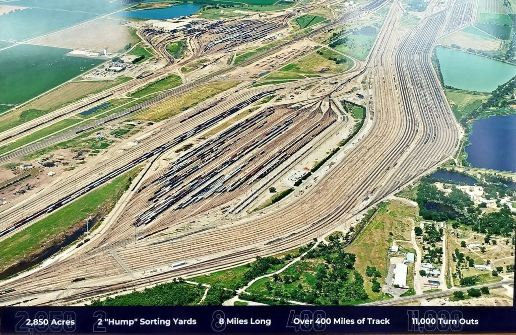 Leaving North Platte, we visited the Golden Spike Tower and Visitor Center. From the tower we could see the Union Pacific Bailey Yard, said to be largest rail yard in the world. The rail yard is an interesting spectacle with dozens of locomotives and more than a thousand rail cars all moving at once on miles of rail lines!