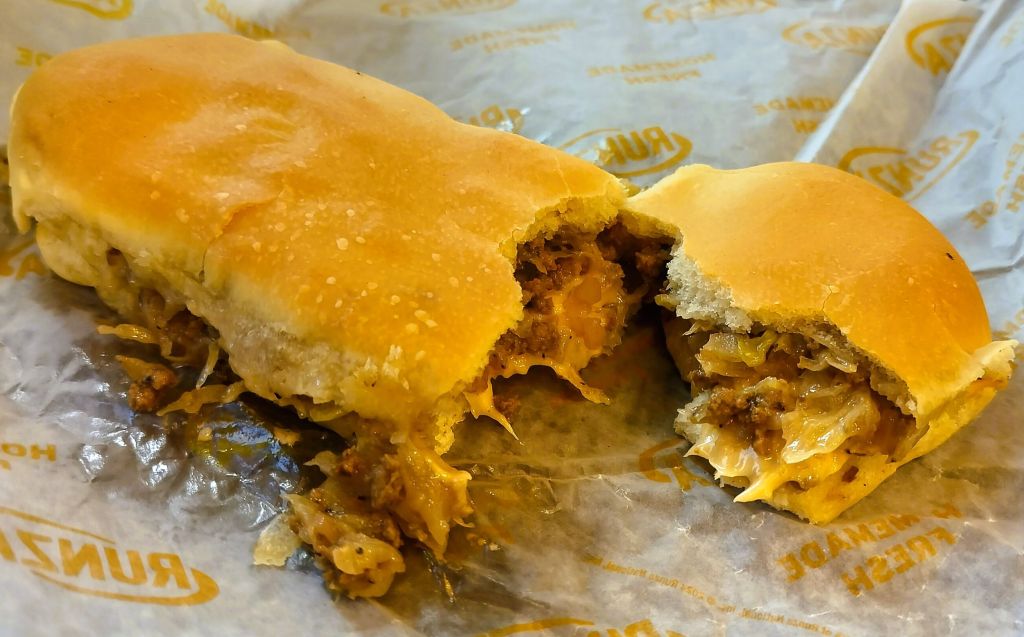 We were hungry after visiting the Kool-Aid Museum in Hastings, NE (see last week Ep 3), so we decided to lunch on a Nebraska staple – a runza. Originating from German and Russian cuisine, a runza is a baked bread pocket sandwich filled with seasoned ground beef, onions and cabbage. Our savory runzas were delicious.