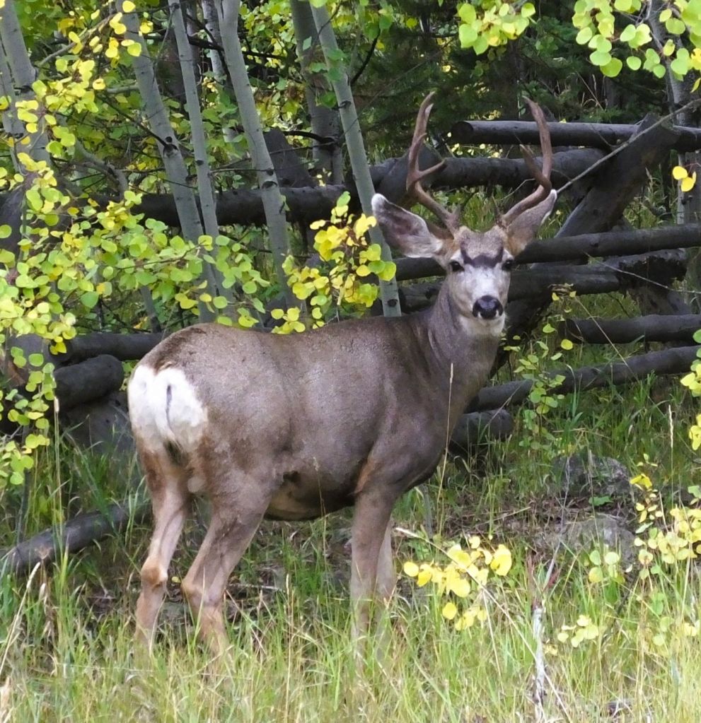 Our biggest critter surprise was along the Snowy Range Scenic Byway.  As we neared a parking area for a short hike, a bull moose and cow were hastily crossing a field beyond the parking area.  As we parked, another moose cow was making her way through the woods toward the other two moose.  This was the first Bullwinkle (our name for a bull moose) we have seen in all our travels including Alaska and Newfoundland!