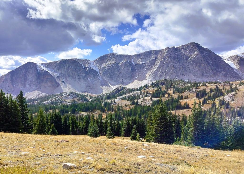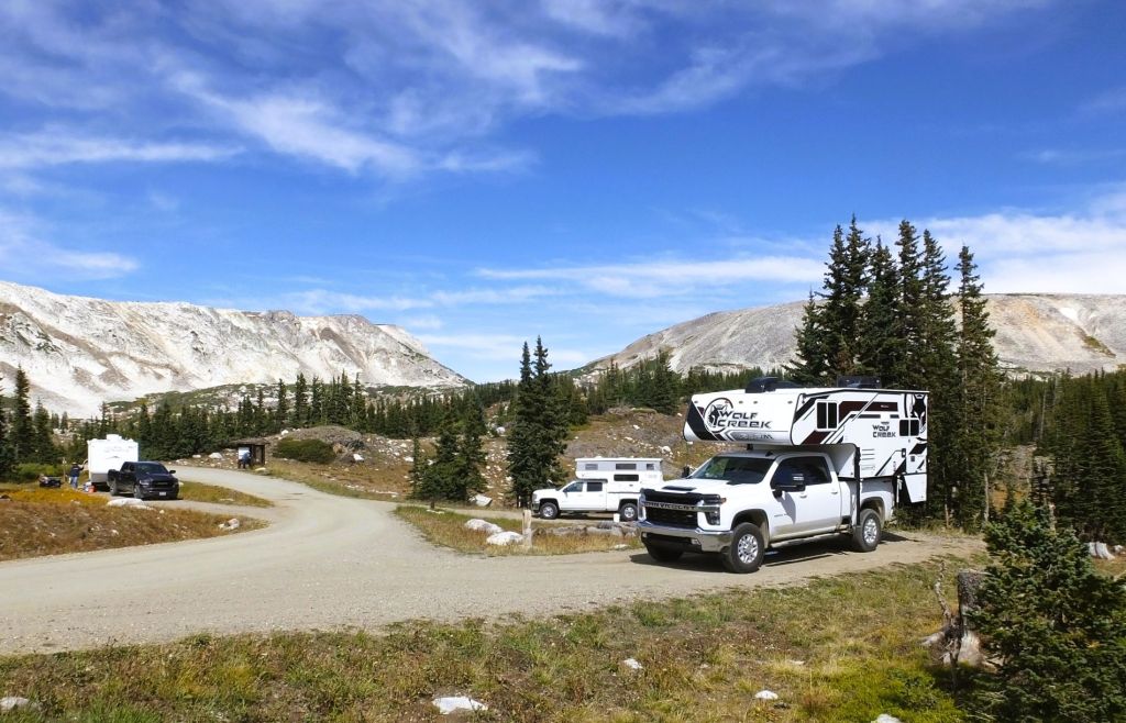 High altitude camping at Sugarloaf Campground with the Snowy Range in the background