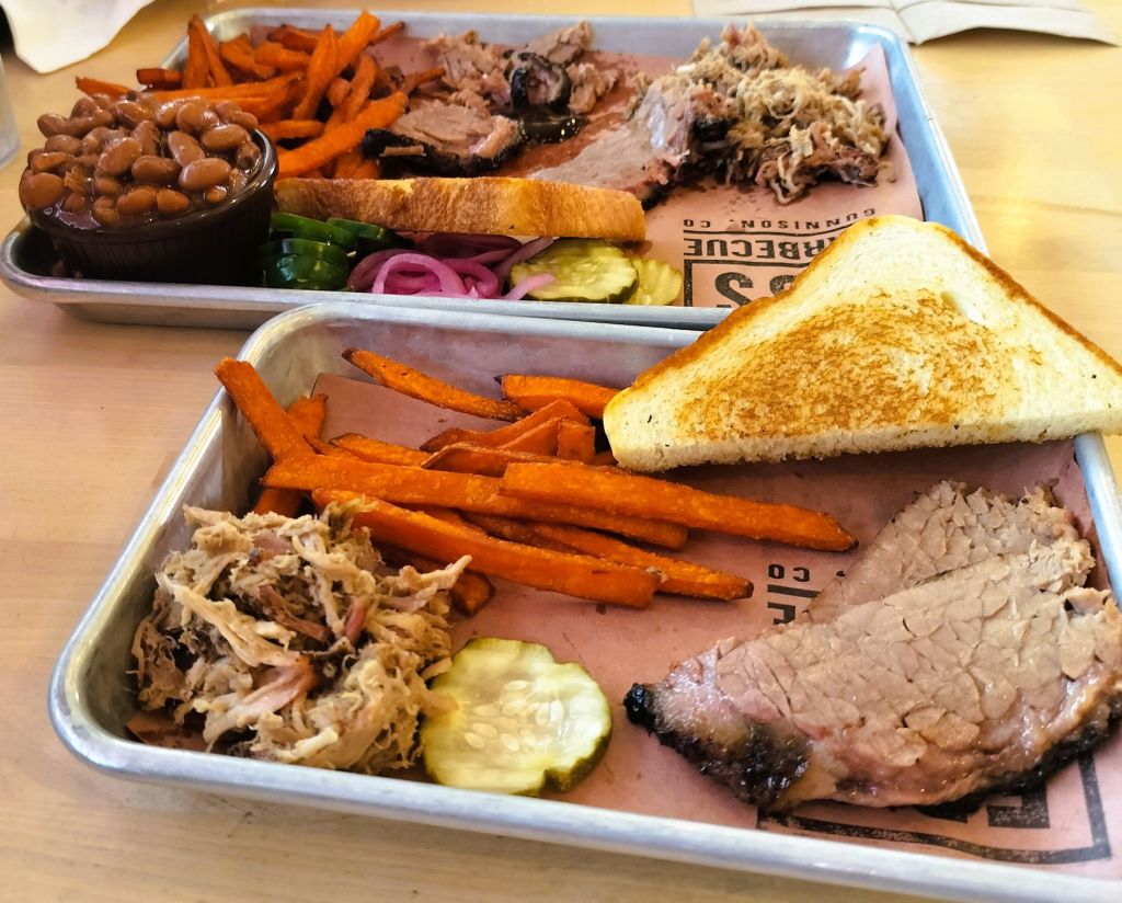 We stopped in Gunnison, CO to resupply and to refuel Percy. Lunch was at 5 Bs BBQ, named for members of the Brown family who started a Gunnison catering business in 1991, expanded to a food trailer, moved into a gas station and settled into their current building in 2022. Their restaurant story is as great as the Q they serve!