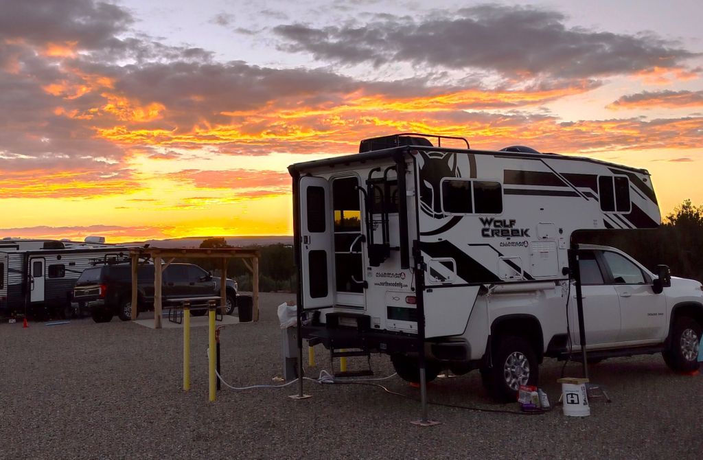 While setting up at the national park campground, we took Pap off Percy. We often do this when staying two or more nights as it is easier to maneuver and park the truck without its piggyback friend. The gas mileage also is much better.