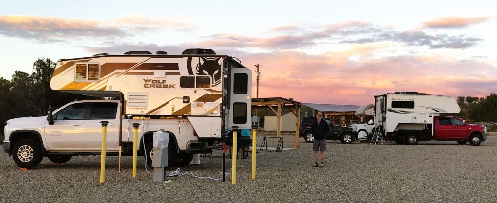 We left Mesa Verde a week before the Albuquerque Balloon Fiesta. We ate lunch in Farmington, a sizeable town in northern New Mexico with a HUGE Walmart, and continued southwest to a remote Harvest Host location.