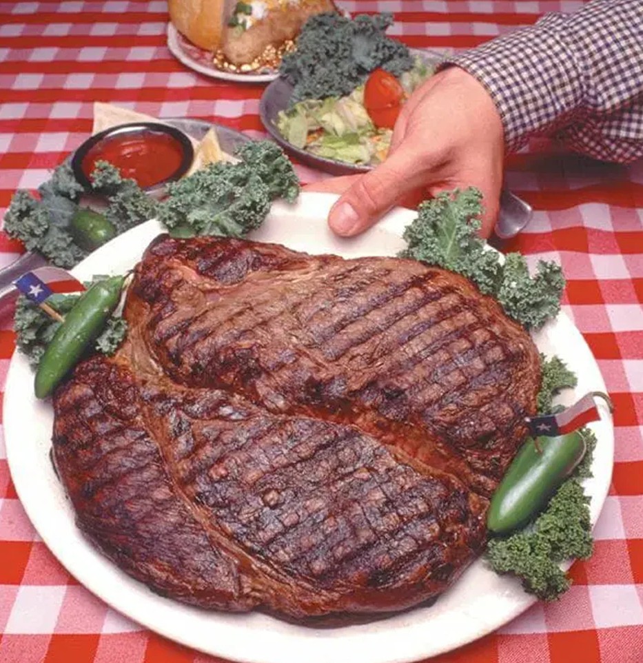 Like the omnipresent Buc-ee’s signs on interstate highways elsewhere, there were frequent signs encouraging a stop at The Big Texan Steak Ranch in Amarillo. The steakhouse is home of the world famous 72-ounce steak challenge: eat a 4½ pound steak and fixings in less than an hour and it’s free. Otherwise, the belly-busting meal will set you back $72!