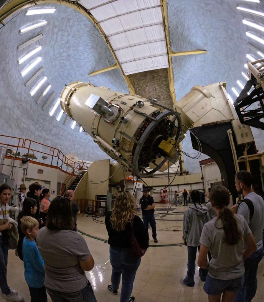 The 107-inch Harlan J. Smith Telescope was completed in 1968. We toured the large observatory building that houses the Smith telescope. Our guide raised and lowered and rotated the telescope and explained how celestial objects are targeted and astronomical data is collected.