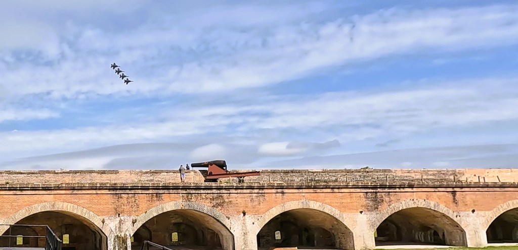 From Georgia we traveled southwest to Santa Rosa Island on the Gulf of America. We camped at Fort Pickens, part of Gulf Islands National Seashore. The campground and fort are located on barrier islands across the bay from Pensacola, FL.