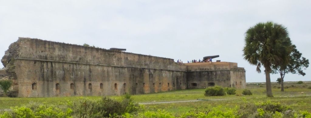 The campground is close to the western tip of Santa Rosa Island, more than seven miles from the heavily developed eastern end of island. We biked to the end of the island where we explored the partially reconstructed fort. We peeked into passageways and storerooms, and climbed to elevated areas where huge cannons once targeted ships attempting to enter Pensacola Bay.